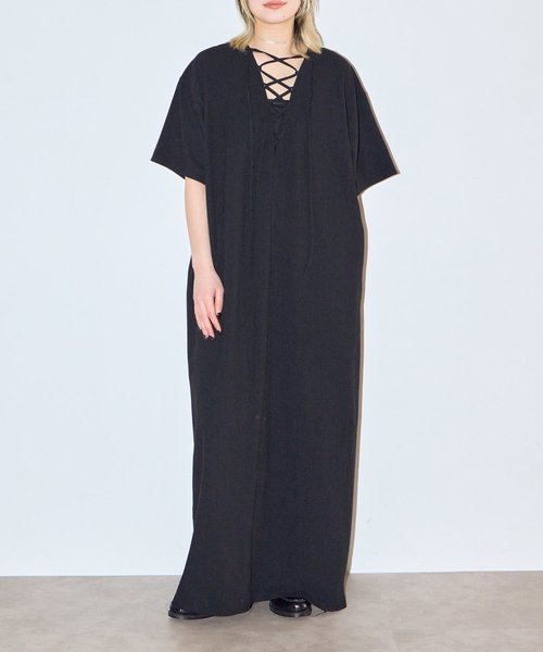 【2026SS】 CITYSHOP LACE UP DRESS / レースアップドレス ■素材 ドライなタッチと清涼感のある天然素材が、ヴィンテージのような好雰囲気を醸し出す一着。 ■デザイン 身体のラインを拾いすぎないしっかりとした肉感が、シャープなIラインを美しく際立たせます。 最大の特徴は襟ぐりのレースアップ。 前後どちらを前にしても着られる2WAY仕様でアレンジも自在です。 裾は裁ち切りの仕様にしており、ラフな印象をプラス。 ミニマルな半袖デザインながら、素材の風合いとディテールでモードな存在感を放つドレスです。 ********************** 透け感:なし 裏地:なし 伸縮性:なし 光沢感:なし 生地の厚さ:普通 ********************** 【スタッフ着用コメント】 《スタッフ》 身長:160cm/普段サイズ:36/着用サイズ:36 サイズ感:着丈は床に付くくらい、身幅と袖幅はたっぷりと広めで落ち感の出るシルエットです。 素材感:麻混独特のシャリ感をやや感じる、しっかりとした質感のカット素材です。 着心地:サラリとした肌触りで、肌離れも良いので夏に一枚で心地よく着られそうな感じでした。 着丈が長めですが、裾が裁ち切りなので、丈詰めもしやすいのも良いと思いました。 ********************** ※取り扱いについては、商品についている品質表示でご確認ください。 ※照明の関係により、実際よりも色味が違って見える場合があります。 またパソコン・スマートフォンなどの環境により、若干製品と画像のカラーが異なる場合もございます。 ※商品の色味は、商品アップ画像をご参照ください。 本体:手洗い可能