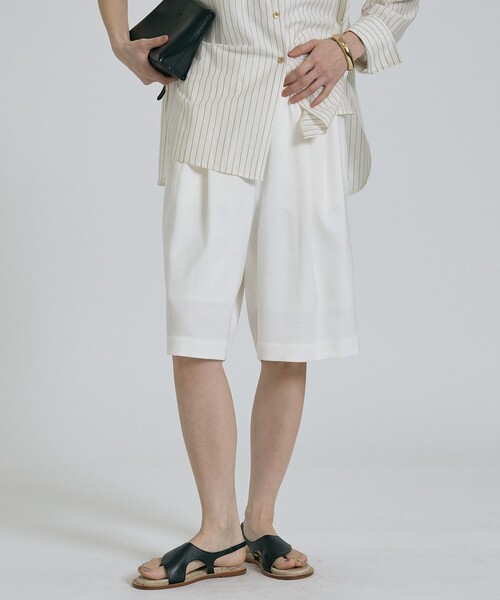 *Detail*人気のリネンライク素材から、新たにショートパンツが登場。 ナチュラルな風合いとすっきりしたシルエットで、大人も取り入れやすい一本です。 軽やかな穿き心地で、暑い季節にも快適に過ごせます。 *Coordinate* 同素材トップス(32520010013)と合わせて、統一感のあるセットアップスタイルに。 トップスは長め丈を選ぶことで、少年っぽくならずバランスよく着こなせます。 アクセサリーをポイントにプラスして、女性らしい印象に仕上げるのがおすすめです。 【商品のお気に入り登録】 完売カラーの再入荷通知や、ラスト1点の通知、プライスダウンしたセール通知も受け取ることができます。 【ブランドのお気に入り登録】 新作や再入荷等、いち早くブランドのお得な情報を受け取ることができます。