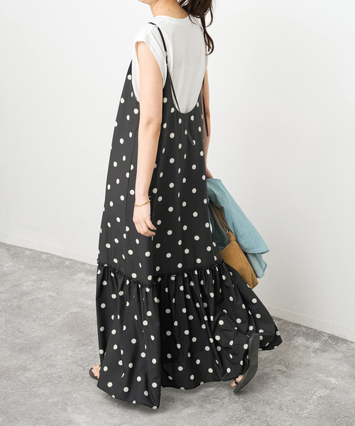 着映えするドットティアードキャミソールワンピースが登場。 ストレッチが効いた、落ち感のあるさらりと軽やかな生地で、暑い季節も快適に着用いただけます。 肌離れが良くシワになりにくく、リラックス感がありながらも上品見えが叶う一枚。 広がりすぎないティアードデザインが甘さを程よく抑え、大人でも取り入れやすいフェミニンなシルエットに仕上げています。 一枚でサマになり、合わせるインナー次第で印象チェンジも楽しめるので、デイリーからお出かけまで幅広く活躍。 シーズンムードを高めてくれる、今押さえておきたいアイテムです。 ▼他にもシリーズがございます。 26030200910020 ドットプリントイージーパンツ 26050200904020 ドットフレンチスリーブシャツ ********************** 透け感:なし 裏地:あり 伸縮性:ややあり 光沢感:なし 生地の厚さ:普通 ********************** 【スタッフ着用コメント】 《スタッフS》 30代/身長:161cm/普通/普段サイズ:S/着用サイズ:38 サイズ感:身体が泳ぐゆとりはあり。様々なインナーとの相性が良さそう。長さは肩紐で調節可能。 素材感:シーンレスに活躍しそうな、落ち感のあるきれい目な素材感。 着心地:さらっとしていて見た目の華やかさに反して着ると重さを感じにくい。裏地も切り替え部分までなので足さばきが良く快適。 ********************** ※アテンション【色あせ】はブラックベースのみの該当します。 この製品は色あせしますので、光の当たらない場所で乾かしたり、保管してください。 ※取り扱いについては、商品についている品質表示でご確認ください。 ※こちらの商品は一部店舗(西宮店・ベイクルーズストア福岡店・EXPOCITY店・TOKYO-BAY店)とオンライン限定での取り扱いとなります。 直接店舗へお問い合わせの際は、取り扱い店舗へお願いいたします。なお、入荷店舗は予告なく変更になる場合がございます。 ※照明の関係により、実際よりも色味が違って見える場合があります。 またパソコン・スマートフォンなどの環境により、若干製品と画像のカラーが異なる場合もございます。 ※商品の色味は、商品アップ画像をご参照ください。 ブラックベース着用スタッフ:161cm 着用サイズ:フ38 ブラウンベース着用スタッフ:160cm 着用サイズ:36 ブラックベース詳細着用スタッフ:163cm 着用サイズ:38 ブラウンベース詳細着用スタッフ:163cm 着用サイズ:36 本体:手洗い可能