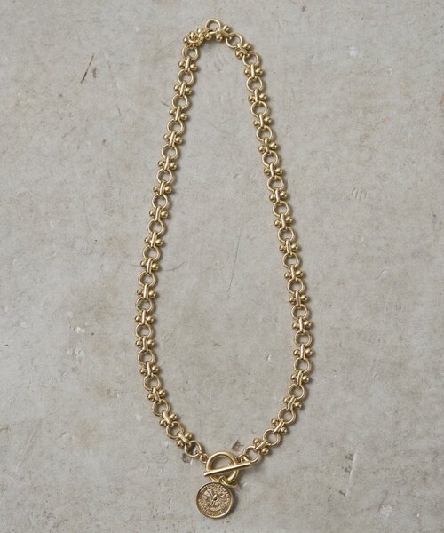 ヴィンテージライクな輝きを首元に。 ■デザイン 程よい存在感でチョーカーのような短めのレングスで、デコルテを美しく演出。 コインモチーフは、細部まで丁寧に作り込まれており、高級感があります。 留め具は使いやすいT字バータイプ。 着脱も簡単で、忙しい朝でもストレスなく着用できます。 ■コーディネート Tシャツやニットに合わせれば、カジュアルなスタイリングのアクセントに。 ワンピースやブラウスに合わせれば、より華やかで洗練された印象になります。 お手持ちのネックレスとの重ね付けで、さらに自分らしいアレンジも楽しめます。 ■素材 真鍮/合金 【GALENA/ガレナ】 日々のスタイリングにアートを。 ”いつもの私”が”特別な私”になる。 日常に溶け込むスペシャルなアイテムを。 MODERNをキーワードに ACCESSORY・BAG・SHOESを提案します。 【お気に入り登録でお得な情報をお知らせいたします 】 完売カラーの再入荷やラスト1点の通知、セールの通知を受けとることができます。 【ブランドのお気に入り登録】 新商品や再入荷、いち早くセールやクーポンなどのブランドの情報を受けとることができます。 生産の都合上、お届け時期が前後する場合がございます。 システムの都合上、店舗より入荷が遅れる場合がございます。 実際にお届けする商品と仕様やサイズが異なる場合がございます。 照明や光の当たり具合で色味が違って見える場合があります。