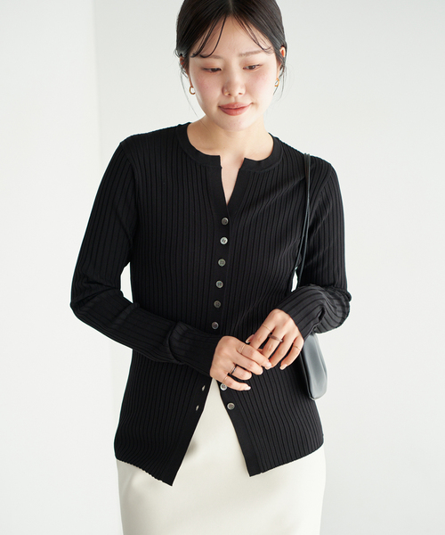 上品なツヤと美しい発色が魅力の、ワイドリブカーディガン。 レーヨン混のしなやかな素材を使用し、さらりと軽やかな着心地に仕上げました。 同素材のタンクトップよりも薄手のため、暑い時期でも快適に着ていただけます。 スキッパー開きと裾のスリットデザインが、抜け感のあるスタイルを演出。 ボタンの開き具合を調整することで、着こなしのアレンジも楽しめる一枚です。 同素材のタンクトップとセットで着用するのもおすすめ。 ********************* 透け感:なし 裏地:なし 伸縮性:あり 光沢感:なし 生地の厚さ:普通 ********************** ※シリーズのご案内 primo rib タンクトップ(商品番号:26080922716020) ※取り扱いについては、商品についている品質表示でご確認ください。 ※ 店頭及び屋内外での撮影画像は、光の当たり具合で色味が違って見える場合があります。 商品の色味は、商品アップ画像をご参照ください。 また、お客様のお使いのPCのモニター環境などにより色味が違って見える場合があります。 予めご了承の上ご注文ください。 本体:ドライクリーニング