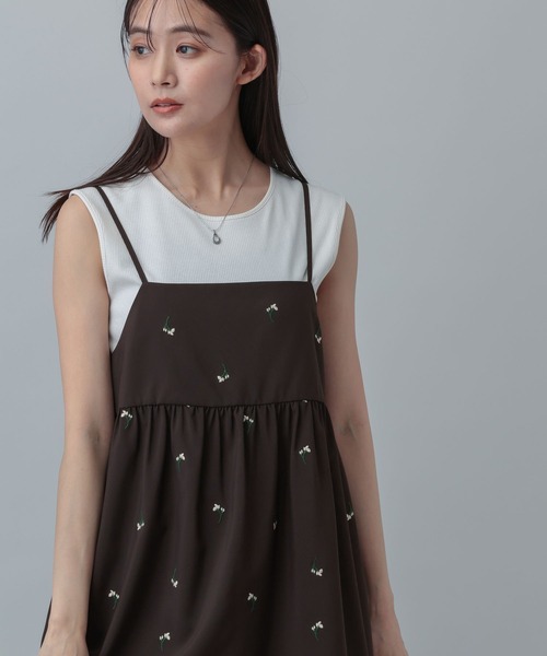 MATINEE LINE ・素材/機能 マシンウォッシャブル イージーケア イージードライ サラッとした肌触りで扱いやすいポリエステル素材に、可憐な小花の刺繍を施したオリジナル生地を使用しています。 ・デザイン 繊細な刺繍がロマンティックな印象を与えるキャミチュニック。 高めの位置で切り替えたシルエットにより、自然な脚長効果が期待できます。 背中にはゴムシャーリングを施し、快適なフィット感と動きやすさを両立。肩のアジャスターで、身長や着こなしに合わせた丈調整が可能です。 ・おすすめスタイリング 同素材のMATINEE LINE/フラワー刺繍イージーパンツ/646659とセットで着用がおススメ。デニムやシンプルなパンツとレイヤードするだけで、華やかな大人カジュアルスタイルが完成します。 ----------------------------- 透け感:透けない 伸縮性:なし 生地感・厚さ:普通 裏地:なし ----------------------------- ・ダークブラウンで計測しています。 (こちらは参考情報となります。カラーにより多少の誤差がございます。) ・こちらの商品はGLOBAL WORK独自の採寸方法となっています。本サイトのサイズガイドと採寸方法が異なる場合がありますのでご了承ください。 ・お買い物が便利になる機能がたくさん ・商品のお気に入り登録 完売アイテムの再入荷通知、ラスト1点、またクーポンやお値下げ通知をお知らせします。 ・ブランドのお気に入り登録 新商品や再入荷のお知らせ等、いち早くブランドのお得な情報を受け取ることができます。 ぜひご登録ください。