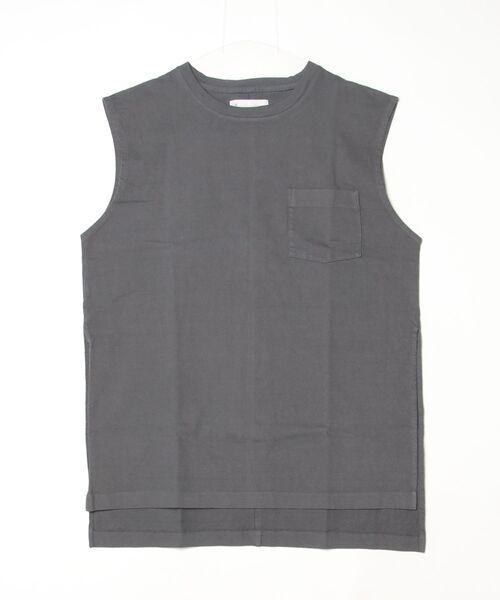 VOAAOV VOAAOV(ヴォアーブ)には、本来決まった呼び方がありません。 Vサインを両手に掲げた笑顔の表情、時には何か特別なものを発見した時のような、嬉しい驚きの表情など、ポジティブな感情をシンプルに表した記号です。 ピースフルな日常生活や環境を構築する為には「今なにが必要であるか」をVOAAOVは様々な方法と表現で提案していきます。 ------------------------------------------------------ 通年定番素材の粗野でヘビーな肉感が特徴のUS天竺を製品染めしヴィンテージの風合いに仕上げたシーズンレスで使いやすいタフなカットソーシリーズ。 夏のメイン使いにも適しているオーバーサイズのノースリーブトップス。 ゆったりとした身幅と長めの着丈が幅広いスタイリングにフィットし、ジャケットやブルゾンシャツやトレーナー、ニットなど、色々なレイヤードをお楽しみいただけます。