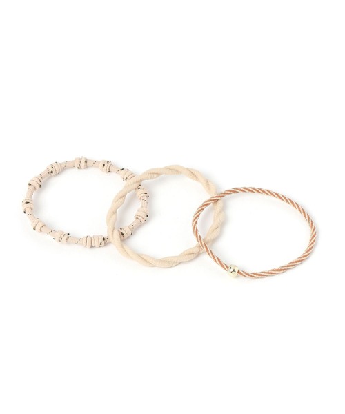 質感の異なるデザインを楽しめるお得な3本セット! 結び目デザインや、メタルパーツをあしらった細身のゴムなど、表情の異なる3本をセットにしました。 ヘアアレンジのアクセントとしてはもちろん、使わないときは手首にブレスレット感覚で付けてもサマになります。 デイリーユースに重宝する、実用性とデザイン性を兼ね備えたアイテムです。 ーーー ヘアゴム セットアイテム ヘアアクセサリー ポニー ブレスレット ーーー