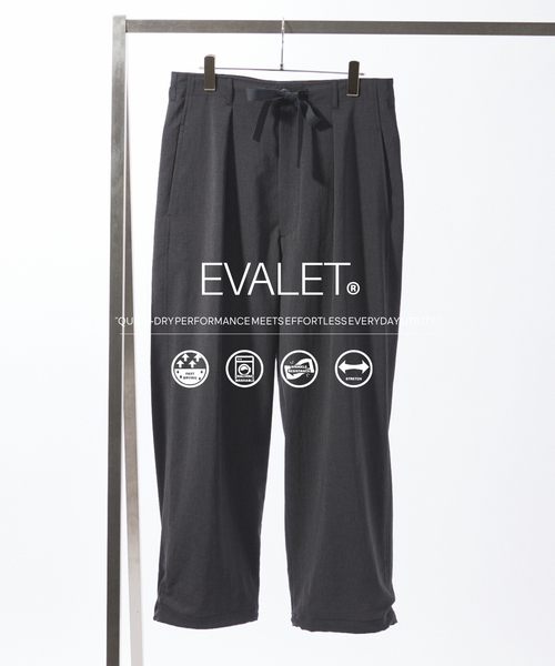 EVALET ST OVER PT 速乾性とストレッチ性を兼ね備えた機能素材「EVALET(エバレット)」を使用。 軽量ながらも適度なハリとコシがあり、仕立て映えするのが特徴です。リラックス感のあるワイドシルエットのオーバーパンツに仕上げました。裾にはドローコードを配し、絞り具合でシルエットのアレンジを自在に楽しめる仕様です。 《EVALET / エバレット》 東レが開発した、優れた吸水性を持つ肌触りが快適な吸汗・速乾素材。 ポリエステル素材のため、水切れが良く、室内外を問わず素早く乾きます。 ********************** 裏地:なし 伸縮性:ややあり 光沢感:ややあり 生地の厚さ:薄め ********************** ※取り扱いについては、商品についている品質表示でご確認ください。 ※照明の関係により、実際よりも色味が違って見える場合があります。またパソコン・スマートフォンなどの環境により、若干製品と画像のカラーが異なる場合もございます。 ※商品の色味は、商品アップ画像をご参照ください。