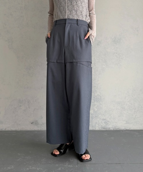 シアーの切り替えがシーズンムードを高めるワイドスラックスパンツ 【Point/Styling】 リネンライクな素材で、きちんと見えとリラックスした穿き心地を両立した一本。 メンズライクなワイドシルエットが、穿くだけでこなれた印象に仕上がります。 ストレートに落ちるワイドラインが脚のラインを拾わず、自然に体型カバーしながら美シルエットを演出。 さらにサイドスリットにシアー素材を切り替えることで、重くなりがちなワイドパンツに軽やかな抜け感をプラスしました。 シアー部分は裏地と重なる設計なので、透けすぎず上品な印象で着用できるのも嬉しいポイント。 ハイウエスト×ワイドベルトデザインで、穿くだけで腰位置が高く見え、簡単にスタイルアップが叶います。 Tシャツやスニーカーと合わせてラフに、 シアートップスやビスチェを合わせれば一気にモードな着こなしに。 トップスを選ばず、デイリーからきれいめまで幅広く活躍する万能アイテムです。 ---------------------------------------------------- 【Detail】 ・リネンライクなドライタッチ素材で、夏でも快適に着用可能 ・サイドのシアー切替で軽やかな抜け感を演出 ・両サイドポケット付きで実用性◎ ・フロントは比翼仕立てでミニマルな印象に ・ウエスト後ろゴム仕様でストレスフリーな履き心地 透け感/なし 光沢感/なし 伸縮性/なし 裏 地/あり 厚 み/やや薄手 ---------------------------------------------------- ※撮影場所により、実際の色味と若干異なる場合がございます。 またパソコン・スマートフォンなどの環境により、若干製品と画像のカラーが異なる場合もございます。予めご了承ください。 ※商品画像はサンプルのため、色味やサイズ等の仕様に変更がある場合がございますので、予めご了承ください。 ---------------------------------------------------- 【お買い物を楽しんで頂く為に】 ■商品のお気に入り登録 お気に入りの登録をして頂きますと 完売カラーの再入荷通知や、ラスト1点の通知を受け取ることができます。 ■ブランドのお気に入り登録 新商品の発売や再入荷、タイムセールやクーポン発行のお知らせなど &g'aimeがお届けするお得な情報を受け取ることができます。