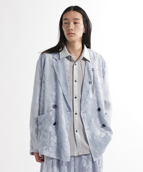 ーーー 繊細な花々が透ける、フラワージャカード×レースのダブルジャケット。 ーーー DESIGN 繊細なレース素材を大胆に切り替えることで、クラシックなダブルブレストのデザインに、HAREらしいアヴァンギャルドな透け感と軽やかさをプラスしました。 ゆったりとしたシルエットながら、フラワージャカードの端正な表情が全体を引き締め、動くたびにレースから覗くインナーとのレイヤードが、唯一無二の奥行きを演出します。 日常を特別なシーンへと変える、圧倒的な存在感とモードな気品を兼ね備えた、今シーズンの象徴的な一着です。 MATERIAL 本体にはポリエステルとレーヨンをブレンドし、ジャカード特有の繊細な浮き模様と滑らかな落ち感を実現しました。 別布のレース部分には、ナイロン、レーヨン、綿、そして再生繊維を贅沢に配合。 この複雑な混紡によって、肌当たりの良さと繊細な透け感、そして型崩れしにくいハリ感を高い次元で両立させています。 非常に軽量で通気性に優れているため、夏場のライトアウターとしてもストレスフリーに着用でき、洗練された「涼」を纏うことができます。 set item セットアップ対応アイテムはコチラを検索→【664852】 ※サンプルにて撮影をしておりますので、実際の商品とは仕様や加工・サイズ等が若干異なる場合がございます。 ※屋外の光や照明の当たり具合で、実物と色味が異なって見える場合がございます。詳細画像の色味をご確認ください。 なお、商品の色や質感を出来るだけ忠実に再現するよう心掛けておりますが、パソコンなどの環境により、実物と若干異なる場合がございます。 ※写真を許可無くコピー・転用することは固くお断りします。
