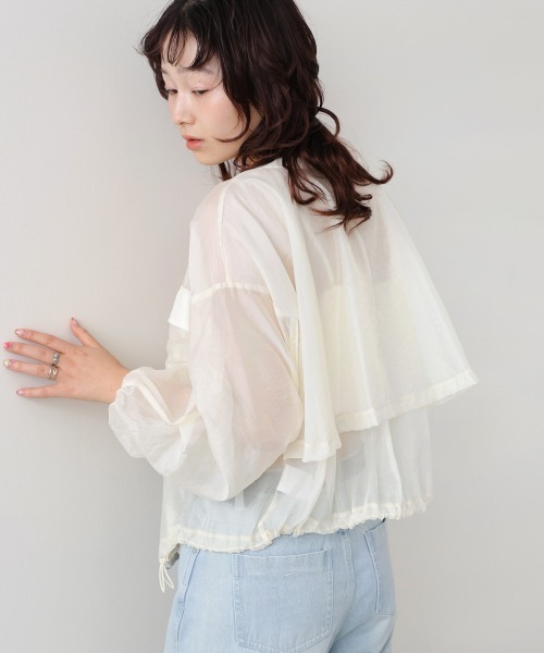 ●Bab● ■POINT 1枚羽織るだけでこなれ感を演出するシアーブルゾンの登場です。透明感のある綺麗なペールトーンの3色展開でシーズンムードが高まります。裾にぐるっと入った丸ゴムは好きな位置で結んで絞り具合を変えて頂ける仕様。袖口を捲り上げて手首を見せれば一気に抜け感のあるスタイルになります。ふらしのバックディティールで360度どこから見ても抜かりないデザインも好印象です。さり気ないパイピングもアクセントになり、ふわっとエアリー感のある生地が初夏までしっかりと活躍してくれるアイテムです。 ■FABRIC 春にぴったりの光沢のあるシアー素材です。つるっとしたツヤ感があります。 ■COORDINATE 春から初夏にかけてのコーディネートがアップデートする万能ブルゾン!キャミワンピにさらっと羽織ったり、スラックスでもジーンズでもしっくり馴染むデザインです。スカートの場合は、ナロースカートなどすっきりめのシルエットと合わせると綺麗なバランスで着こなせます。 ………………… 透け感:あり 裏地:なし 洗濯方法:クリーニングネットをご使用ください ………………… ※撮影環境により、多少実際のカラーと異なる場合がございます。また、携帯やスマートフォン、パソコンなどの画面上と実物では多少色が異なって見える場合がございます。ご了承下さいませ。 ※画像の商品はサンプルのため、実際の商品と若干仕様が異なる場合がございます。 ※濃色品は、過度な摩擦や濡れた状態での摩擦により、色落ち・色移りをする恐れがあります。 ※この商品は、素材の特性上、洗濯の際に多少の伸びや縮みが生じる恐れがあります。洗濯後は形を整えてから干してください。 ※その他お取り扱いに関しましては、商品に付属のアテンションタグをご覧ください。 ★商品のお気に入り登録 再入荷やラスト1点のお知らせ、セール情報などお知らせを受け取ることができます! ★ブランドのお気に入り登録 新商品や再入荷などのお得な情報を受け取ることができますので、是非ご登録ください。 ★Bab公式Instagramアカウント【bab.showroom】で最新情報をチェック!