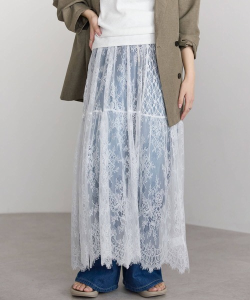 2026SS 着回し自在!レーススカートとペチコートのセットアイテム♪ ■アイテムポイント ・繊細なヒゲレースを贅沢に使用したティアードスカート。 ・柄が異なる2種類のレースを組み合わせ、さりげない奥ゆきをプラス。 ・軽やかで立体感のあるシルエットが、コーディネートを華やかに演出してくれる一枚です。 ・取り外し可能なペチコート付きで、スカートとしてはもちろん、巻きスカート間隔でデニムやワイドパンツにレイヤードしたトレンド感のあるスタイリングも楽しめます。 ・Tシャツやスウェットと合わせたカジュアルスタイルから、ブラウスやニットと合わせたフェミニンな着こなしまで幅広く活躍します。 ■スタイリングポイント ・Tシャツやスウェットと合わせたカジュアルスタイルはもちろん、ブラウスやニットと合わせた女性らしい着こなしにもおすすめ。 ・ペチコートを付けてスカートとして着用するのはもちろん、外してデニムやワイドパンツにレイヤードすれば、トレンド感のあるスタイリングが完成します。 ・シンプルなトップスと合わせるだけでも、ヒゲレースの存在感でコーディネートが華やぐアイテムです。 ■サイズ スカートサイズ ウエスト【67~106cm】 スカート丈【90cm】 ペチコートサイズ ウエスト【66~120cm】 ペチコート丈【80cm】 ※こちらの商品はワンサイズのみとなります。 -------------------------- 透け感:あり 裏地:セットでペチコート付き 伸縮性:あり 光沢感:ややあり 生地の厚さ:薄手 ポケット:無し --------------------------- ※実店舗と発売時期が異なることがございます。あらかじめ御了承ください。 ※撮影場所やお使いのモニター環境により若干お色味が異なる場合がございます。 ※お取り扱いに関しましては、商品に付属のアテンションタグをご覧ください。 ※サイト上のカラー名と、お届け商品に記載されているカラー名が異なる場合がございます。 ※生産時期により色・素材・サイズ感など多少異なる場合がございます。予めご了承ください。 【お買い物をより楽しんで頂くために】 ▼商品のお気に入り登録 ♡のクリックで商品のお気に入り登録が完了! 完売カラー再入荷のお知らせ、ラスト1点のお知らせ、セールのお知らせを受け取ることができます。 ▼ブランドのお気に入り登録 新商品や再入荷のお知らせ等、いち早くブランドのお得な情報を受け取ることができます。 【tiptop+pocket/ティップトッププラスポケット】 デイリーに活躍するトレンドを取り入れたカジュアルアイテムを発信。 -tiptop- ベーシックとトレンドをMIXしたカジュアルスタイルをベースに "いま欲しい""いま着たい"が見つかる高感度なリアルクローズを提案します。 -pocket- シンプルで自然体な大人の女性へ。 デイリーに着られるベーシックなアイテムの中に、さりげなく今っぽさを効かせたラインナップ。 飾りすぎない大人カジュアルスタイルを提案します。