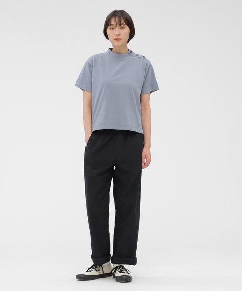 リネンとコットンを組み合わせた平織素材のトラウザーズ。リネンのタテ糸には表面のみを染めて芯を白く残す中白染めを用い、ヨコ糸にはソリッドに染めたコットンを使用した、奥行きのあるミックス感が特徴の生地。ほどよいハリとやわらかな肌触りをあわせ持つ、清涼感のある風合い。ゆとりのある腰まわりから裾に向かって緩やかに細くなるシルエットで、裾幅をわずかに広げ自然なバランスに整えたデザイン。 同素材のスカート品番:595-6132204 ※こちらはウィメンズの商品です。 ▽お気に入り登録 <商品のお気に入り登録> 完売カラーの再入荷通知や、ラスト1点の通知、セールの通知も受け取ることができます。 <ブランドのお気に入り登録> 新商品や再入荷など、いち早くブランドの情報を受け取ることができます。