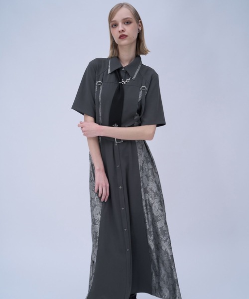 ーーー ジャガードの切り替えデザインが目を惹く 上品なワンピース ーーー point □レイヤードしているような見え方で、シンプルながらも一枚で存在感のあるワンピース □胸元には飾りベルトを垂らし、HAREらしいモード感をプラス □縦に落ちるラインがスタイルアップしてくれ、シャープで洗練された印象 □異素材で配色カラーを使用し、コーディネートのアクセントに □二の腕など気になる部分をカバーできる短すぎない袖丈設定 □前開き仕様の為、一枚はもちろん羽織りとしても着用可能 styling 骨格ナチュラル:ゆったりめのカーディガンやパーカーを羽織り、スニーカーを合わせたカジュアルスタイリングがピッタリ。キャップなど小物でこなれ感をプラス。 骨格ウェーブ:細めのベルトでウエストマークをすることで、目線が上に行き、スタイルアップ効果◎ 骨格ストレート:タイトなトップスとボトムスを合わせ、前を開けて羽織るスタイリングがおすすめ。縦のラインが強調されスタイリッシュな印象。 ※加工を施した画像を使用しております。 実物と色味が異なる可能性があるため、色味は詳細後ろにある生地寄り画像を参考にお願いいたします。 あらかじめご了承下さい。