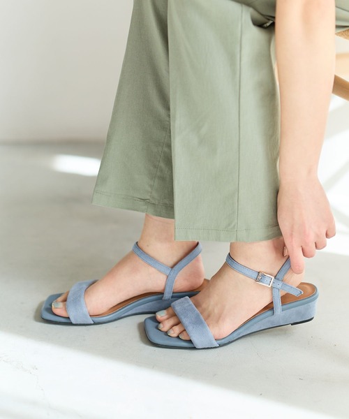 安定感とスタイルアップが叶うウェッジソールサンダル。 足首ストラップ付きでホールド感があり、デイリーからお出かけまで幅広く活躍します。 スクエアトゥデザインが洗練された大人の印象に。 コーディネートのアクセントになる一足です。 ※屋外での撮影画像は光の加減で実際の商品より明るく見えたり、風合いが異なって見える場合がございます。 商品の色味はスタジオ撮影の画像を参考にして下さい。 ------------------------------------- ≪お買い物をよりお楽しみいただくために≫ ◆商品のお気に入り登録(ハートマークをクリック) 完売カラーの再入荷通知や、完売間近の通知、セールの通知も受けることができます。 ◆ブランドのお気に入り登録 新商品や再入荷など、いち早くブランドのお得な情報を受け取ることができます。 -------------------------------------