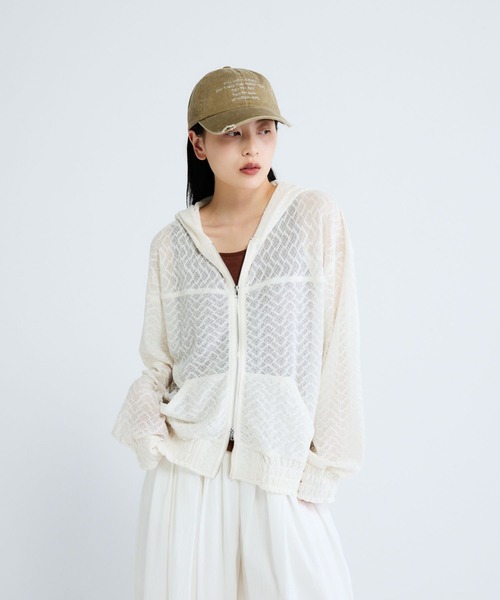 ーーー トレンドのレース素材を使用♪ スタイリングにこなれ感をプラスするシアーパーカー ーーー ■Design 今季トレンドのレース素材を贅沢に使用したパーカーブルゾンが登場。 程よい透け感で、トップス感覚で楽しめるブルゾンです。 腰回りを覆うくらいのゆとりのあるオーバーサイズで、体型カバーが叶います。 逆開ファスナーで、スタイリングに合わせて着こなしに変化をつけられるところも◎ 袖と裾に幅広のリブをあしらい、丸みのあるシルエットに仕上げました。 軽やかな着心地なので、暑い季節も楽しめるアイテムです。 ■Material レース特有のチクチク感を感じにくい生地を使用。 程よく伸縮性があるので、着用時のストレスが少ないところが嬉しいポイントです。 ■Styling アイテムを選ばずスタイリングが可能。 甘めのレース素材を使用しているので、デニムやツイルのメンジーな素材のアイテムとのスタイリングがオススメです。 今季は特に、ボリュームのあるワイドシルエットボトムとのスタイリングが◎ 屋内での冷房対策としてもオススメです。 ・透け感:透ける(ホワイト) ・伸縮性:あり ・生地の厚さ:薄い ・裏地:なし ・洗濯:液温は40 ℃を限度とし、手洗いができる ※さらに詳しいお手入れ方法は品質表示タグをご確認下さい。 絵表記通りのお手入れを推奨しております。 -INFORMATION- ◆お買い物をよりお楽しみいただく為に 『♡』をクリックしてお気に入り登録がおすすめ! ・完売カラーの再入荷通知や、ラスト1点の通知、セールになった際も通知を受け取ることができます★ ◆ブランドのお気に入り登録 新商品や再入荷など、お得な情報を受け取ることができますので、是非ご登録ください♪ ※屋外の光や照明の当たり具合で、実際の商品の色味とカラー別画像の色味に違いが発生する場合がございます。 商品の色味はスタジオ撮影の詳細画像にてご確認ください。