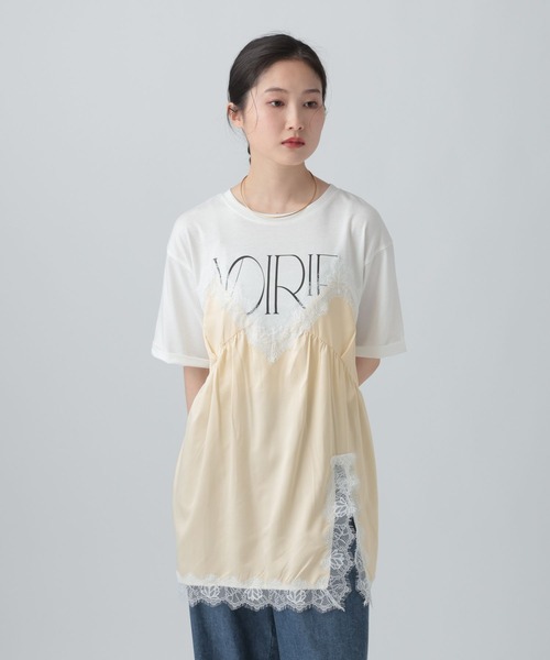 トレンドのサテンレースキャミが前身頃にドッキングされたTシャツ 【デザイン】 トロンプルイユ(視覚的錯覚)仕様の、まるでキャミソールをレイヤードで着ているかのような見え方が特徴的な1枚です!後ろはストラップを渡したようなデザイン性のあるおすすめアイテム◎ 【スタイリング】 ・落ち感のある柔らかい素材のボトムスと合わせるのがおすすめです。 --------------------------------------------------- 【気になる商品はお気に入り登録がおすすめ!】 ・在庫残りわずか ・再入荷 ・セールの情報 などの通知を受け取ることができます。 気になる商品は♡をクリックして、 「お気に入り登録」しましょう! 【ショップ・ブランドのお気に入り登録も!】 新商品や再入荷、セール、クーポンの配布など、 いち早くお得な情報を受け取ることができます。 ---------------------------------------------------