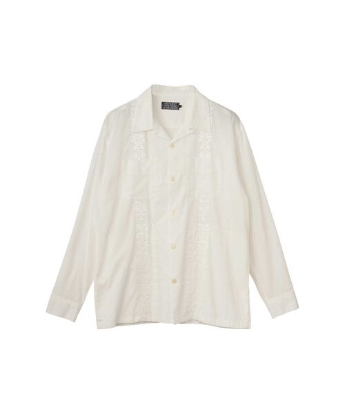 程よくゆとりのあるボックスシルエットのキューバシャツ。 開襟や縦に入った繊細な刺繍など、クラシックなディテールに加え、脇ポケットで使いやすさもプラス。 ターコイズ色、ブラック色は製品染めで仕上げ、洗いざらしのような自然な色ムラと味わいのある風合いに。 ギターストラップをイメージした HYSTERIC GLAMOUR らしいデザインが、刺繍職人により緻密に表現された一着。 ボディには、細番手の強撚糸を使った、軽やかで清涼感のあるパナマボイル素を使用。さらっとした肌あたりと、程よい透け感が上品な印象の一枚。 ‥‥‥‥‥‥‥‥‥‥‥‥ 透け感:なし 伸縮性:なし 裏地 :なし ‥‥‥‥‥‥‥‥‥‥‥‥ ※画像の商品はサンプルです。実際の商品と仕様、加工、サイズ、素材が若干異なる場合がございます。 ──────────────────── HYSTERIC GLAMOUR(ヒステリックグラマー) 店舗へお問合せの際は、下記品番をお申し付け下さい。 【品番:02261AH07】 ────────────────────