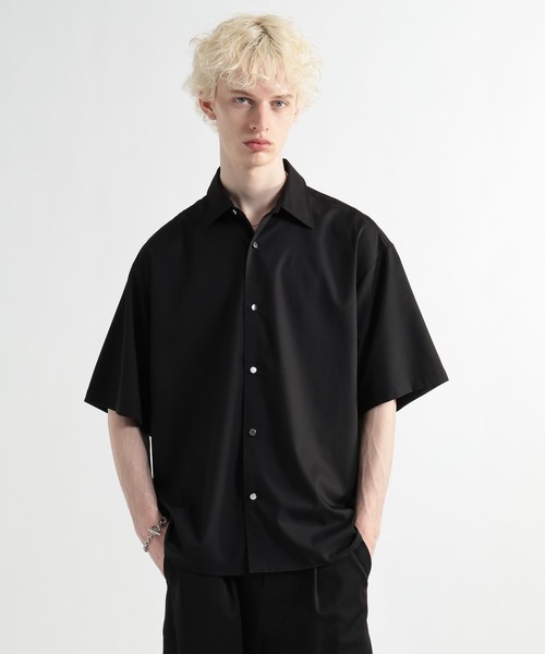 ーーー 日常のスタイリングを品良く格上げする、クリーンを極めた新時代のドレスモードシャツ。 ーーー DESIGN ドレスシャツとしての品格を追求し、細やかな運針で丁寧に縫い上げることで、クリーンで高級感のあるステッチラインを実現しました。 フロントにはアクセントとして上品なメタルボタンを採用。ミニマルなブロードシャツに無機質な輝きをプラスすることで、アクセサリー要らずでサマになるモードな佇まいに仕上げています。 適度なゆとりを持たせたシルエットは、カッチリしすぎない絶妙なサイズ感。一枚着としてはもちろん、今期トレンドのレイヤードスタイルのインナーとして、襟元や袖口から覗かせる着こなしもおすすめです。 MATERIAL 滑らかな手触りと程よい光沢を湛えた素材が、ドレスシャツらしい気品溢れる表情を演出します シワになりにくいイージーケア仕様のため、洗濯後のお手入れが簡単なのも嬉しいポイント。デイリーに気兼ねなく着用いただけます。 適度なストレッチ性を備えているため、動きを妨げず、一日中ストレスフリーに過ごせる機能美あふれるファブリックです。 ※サンプルにて撮影をしておりますので、実際の商品とは仕様や加工・サイズ等が若干異なる場合がございます。 ※屋外の光や照明の当たり具合で、実物と色味が異なって見える場合がございます。詳細画像の色味をご確認ください。 なお、商品の色や質感を出来るだけ忠実に再現するよう心掛けておりますが、パソコンなどの環境により、実物と若干異なる場合がございます。 ※写真を許可無くコピー・転用することは固くお断りします。