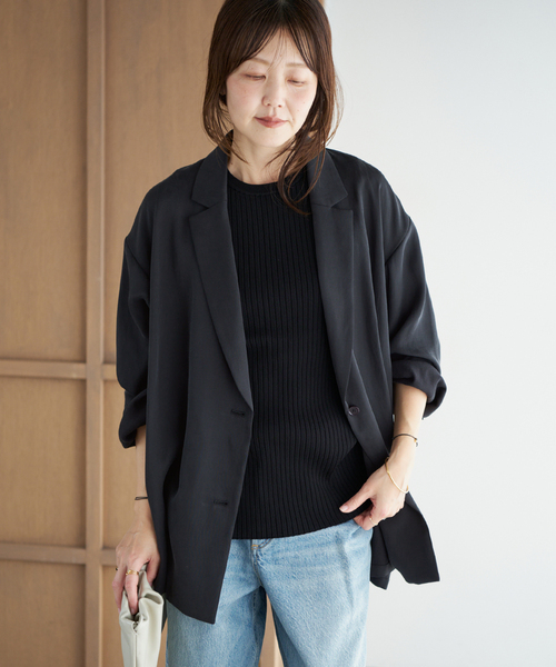ソフトでしなやかな素材感が際立つ、さらっと羽織りやすいジャケット。 定番のウォッシャブルリネン混パンツの素材を強くもみ込み、コシをやわらげながらフィブリル感のある表情に仕上げました。 シワになりやすい点を軽減し、上品な見え感と使い勝手の良さを兼ね備えたアイテム。 なめらかな落ち感とほのかな光沢が、羽織るだけで洗練された印象を与えてくれます。 無駄を削ぎ落としたシンプルなデザインで、素材の魅力が引き立つ一着。 ********************** 透け感:なし 裏地:なし 伸縮性:なし 光沢感:なし 生地の厚さ:普通 ********************** ※重さについて 38サイズ:420g ※取り扱いについては、商品についている品質表示でご確認ください。 ※ 店頭及び屋内外での撮影画像は、光の当たり具合で色味が違って見える場合があります。 商品の色味は、商品アップ画像をご参照ください。 また、お客様のお使いのPCのモニター環境などにより色味が違って見える場合があります。 予めご了承の上ご注文ください。 本体:手洗い可能