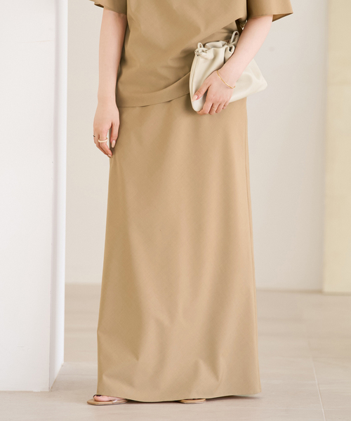 エレガントに映える、上品な印象のロングスカート。 バイヤス使いによって、しなやかなAラインシルエットに仕上げています。 Vラインに仕立てたウエストデザインが、自然なドレープと美しいシルエットを演出。 同素材のブラウスとセットアップで着用すれば洗練されたスタイルに。 ミニマルなデザインなので単品でも着回しやすく、幅広いトップスと合わせやすい一着です。 ********************** 透け感:なし 裏地:あり 伸縮性:なし 光沢感:なし 生地の厚さ:普通 ********************** ※シリーズのご案内 Bias ブラウス(商品番号:26051922132010) ※取り扱いについては、商品についている品質表示でご確認ください。 ※ 店頭及び屋内外での撮影画像は、光の当たり具合で色味が違って見える場合があります。 商品の色味は、商品アップ画像をご参照ください。 また、お客様のお使いのPCのモニター環境などにより色味が違って見える場合があります。 予めご了承の上ご注文ください。 本体:手洗い可能