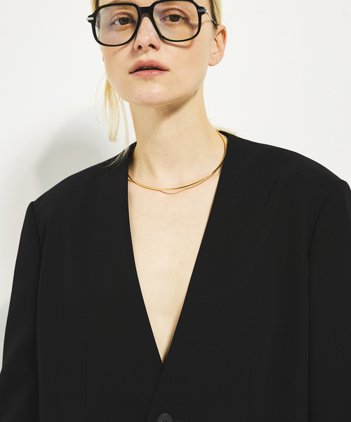 しなやかな素材で仕立てた、洗練された印象のショートジャケット。 深めのVネックとミニマルなデザインが、シンプルながらこなれた雰囲気を演出。 さらりと羽織るだけで、きれいめにもカジュアルにも馴染む万能な一着です。 ********************** 透け感:なし 裏地:あり 伸縮性:なし 光沢感:なし 生地の厚さ:普通 ********************** ※取り扱いについては、商品についている品質表示でご確認ください。 ※ 店頭及び屋内外での撮影画像は、光の当たり具合で色味が違って見える場合があります。 商品の色味は、商品アップ画像をご参照ください。 また、お客様のお使いのPCのモニター環境などにより色味が違って見える場合があります。 予めご了承の上ご注文ください。 モデルサイズ:身長:163cm 着用サイズ:フリー 本体:ドライクリーニング