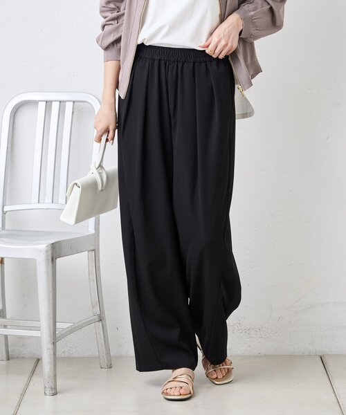 -商品ポイント- ・ゆったりとしたカーブシルエットで体のラインを拾いにくいパンツ。 ・フロント部分にはタックが施されており、シンプルなデザインながらも、さりげない立体感と上品さをプラス。カジュアルになりすぎず、女性らしい着こなしを叶えます。 ・ウエストはゴム仕様なので、ストレスフリーな履き心地です。 ーマテリアルー ■透け感:なし ■裏地:なし ■伸縮性:ウエスト部分あり ■光沢感:ややあり ー洗濯方法ー 手洗い可能 ー注意事項ー 商品の画像はできるだけ実物に近い色味で掲載しておりますが、ご覧になるモニターや照明の環境により、実際の色味と若干異なって見える場合がございます。 あらかじめご了承くださいませ。 ・画像の商品はサンプルです。 実際の商品と仕様、加工が若干異なる場合があります。 ・サイズ表記はあくまで目安となります。 __________________________________ ※取り扱いについては、商品についている品質表示でご確認ください。 ※照明の関係により、実際よりも色味が違って見える場合があります。 またパソコン・スマートフォンなどの環境により、若干製品と画像のカラーが異なる場合もございます。予めご了承ください。 ※詳細画像の色合いをご参照ください。予めご了承ください。 __________________________________ 【お買い物をよりお楽しみいただくために♪ 】 ▼ 商品のお気に入り登録 お気に入りアイテムのお値下げ・再入荷・在庫ラスト1点など通知を受けることができます。 ▼ブランドのお気に入り登録 Jena espace merveilleuxの新商品や再入荷、セール、クーポン配布などお得な情報を受けることができます。