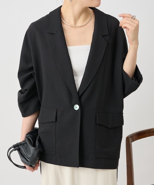■アイテムリラックス感のあるオーバーシルエットで、気負わず羽織れるジャケット。ドルマンスリーブが抜け感を演出し、動きやすさも兼ね備えています。軽やかなメッシュ生地を使用し、裏地なしの仕立てで涼しく快適な着心地です。存在感のある大きめポケットがさりげないアクセントに。前後差のある丈とスリット入りで、オーバーサイズでもすっきりとした印象に仕上げています。■素材・洗濯表示素材:ポリエステル82% 麻9% レーヨン8% ポリウレタン1%洗濯表示:手洗い可※着用時・洗濯時は、必ず取扱い表示・タグをご確認の上、お取り扱い下さい。----------------------------------伸縮性:ややあり光沢:なし厚み:ふつう透け感:ややあり裏地:なしポケット:あり(両サイド)----------------------------------《お取り扱い上のご注意》・タンブル乾燥不可《予約商品について》・サンプルの為、素材情報、洗濯表示については企画段階の情報を記載しております。公的機関での試験データ結果を受け、量産にあたり混率や洗濯方法の変更が発生する場合がございますので、ご了承くださいませ。・サンプルでの撮影、計測をしております。商品の仕様が一部変更になる場合がございます。・撮影サンプル品はブランドタグがついておりません。製品にはタグがつきますので、製品の表に縫い糸が見える場合がございます。・工場の生産の都合上、納期が変更になる場合がございます。検品や輸送の関係で、発送日が前後しますのでご了承ください。また、入荷状況により、お客様への発送が店頭販売より遅れる場合もございます。・店頭に陳列していた商品も含まれる場合がございます。《商品画像について》ご覧頂いている商品の写真につきましては、できるだけ実物の色に近くなるように努めておりますが お使いの環境(モニター、ブラウザ等)の違いにより、色の見え方が実物と若干異なる場合がございます。 予めご了承ください。《ハートをタップして商品のお気に入り登録》【ハートをタップ】登録カラーの商品の「残りわずか」「再入荷」「値下げ」通知を受け取ることができます。【各ショップアプリにてブランドフォロー】 新商品などの入荷情報、最新のニュースやお得な情報を受け取ることができます。