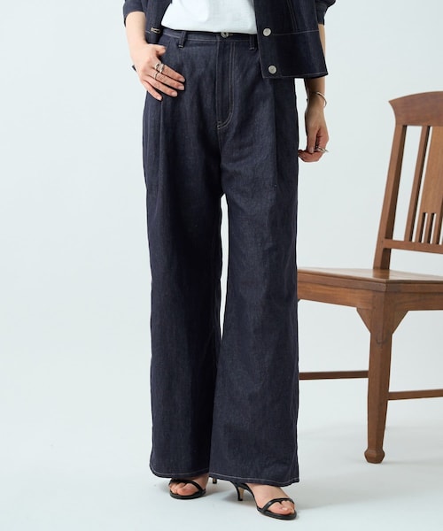 ■アイテムリネン混素材を使用したワイドデニムパンツ。柔らかさのあるデニム生地を使用し、軽やかでリラックス感のある穿き心地に仕上げました。フロントにはタックを施し、ゆとりのあるワイドシルエットに。ハイウエストデザインでスタイルアップ効果も期待できます。シンプルながらもシルエットが引き立つ一本で、カジュアルからきれいめまで幅広いスタイリングに活躍。同素材のジャケットと合わせたセットアップスタイルもおすすめです。>>リネン混デニムジャケット■素材・洗濯表示素材:綿64% 麻36%洗濯表示:洗濯機で弱い洗濯可(液温30℃を限度)※着用時・洗濯時は、必ず取扱い表示・タグをご確認の上、お取り扱い下さい。----------------------------------伸縮性:なし光沢:なし厚み:ふつう透け感:なし裏地:なしポケット:ありファスナー:あり----------------------------------《お取り扱い上のご注意》・タンブル乾燥不可・この素材は摩擦(特に湿った状態での摩擦)や汗、雨などで濡れた時は他の衣料や下着に色が移る場合がありますのでご注意下さい。《予約商品について》・サンプルの為、素材情報、洗濯表示については企画段階の情報を記載しております。公的機関での試験データ結果を受け、量産にあたり混率や洗濯方法の変更が発生する場合がございますので、ご了承くださいませ。・サンプルでの撮影、計測をしております。商品の仕様が一部変更になる場合がございます。・撮影サンプル品はブランドタグがついておりません。製品にはタグがつきますので、製品の表に縫い糸が見える場合がございます。・工場の生産の都合上、納期が変更になる場合がございます。検品や輸送の関係で、発送日が前後しますのでご了承ください。また、入荷状況により、お客様への発送が店頭販売より遅れる場合もございます。・店頭に陳列していた商品も含まれる場合がございます。《商品画像について》ご覧頂いている商品の写真につきましては、できるだけ実物の色に近くなるように努めておりますが お使いの環境(モニター、ブラウザ等)の違いにより、色の見え方が実物と若干異なる場合がございます。 予めご了承ください。《ハートをタップして商品のお気に入り登録》【ハートをタップ】登録カラーの商品の「残りわずか」「再入荷」「値下げ」通知を受け取ることができます。【各ショップアプリにてブランドフォロー】 新商品などの入荷情報、最新のニュースやお得な情報を受け取ることができます。