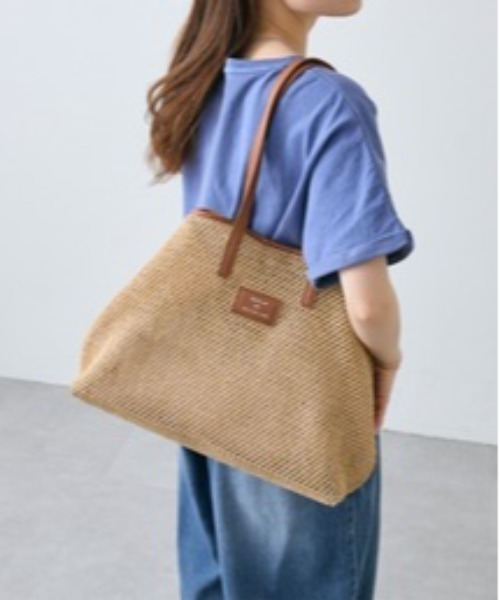 ピュアルセシン 2026 SS collection 【EFFORTLESS LUXE】 ●商品のお気に入り登録 クーポンやタイムセール、再入荷通知やラスト1点などお得な情報を受け取ることができます。 ご登録をお忘れなく◎ 春夏シーズンにピッタリの涼し気な雑材トートバッグ。 ハンドルやハイピングにフェイクレザーを組み合わせることで、カジュアル過ぎない見た目に仕上げました。 両サイドのボタンを留めることでバッグ本体の形を変形することができ、 荷物の量や気分に合わせてお使いいただけます。 雑材の目は粗すぎず中身が見えにくく、口にはマグネットボタンが付いているので防犯面も安心◎ マチが大きくA4サイズもゆとりをもって入れることができるサイズ感で、 夏場に重宝する薄手の羽織やドリンクも普段の荷物と一緒にしまえます。 しっかりとした合皮を底板を固定し安定感のある嬉しい仕様です。 これからの季節レジャーや旅行などにも活躍してくれること間違いなしのアイテムです。 ※お取り扱いの際は、商品についている品質表示とアテンションタグを必ずご確認下さい。 ※撮影場所やお使いのモニター環境により若干お色味が異なる場合がございます。特にロケの撮影では明るく見える傾向にございます。 ※予約商品はサンプルで撮影をしております。若干の仕様が変更になる場合がございますので予めご了承の上ご注文くださいますようお願いいたします。 【予約品の入荷時期について】 店舗入荷時期と予約商品のお届け時期が異なる場合がございますので、予めご了承ください