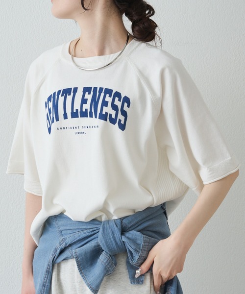 ピュアルセシン 2026 SS collection 【EFFORTLESS LUXE】 ◇カジュアルすぎない上品見えが叶う大人ロゴニット◇ ●商品のお気に入り登録 クーポンやタイムセール、再入荷通知やラスト1点などお得な情報を受け取ることができます。 ご登録をお忘れなく◎ ●デザイン ヴィンテージのTシャツのようなロゴが目をひく、ニットプルオーバー。 さらっとした肌触りの強撚コットンニット生地は、毛羽が少なくクリアな表面感。 クリアな表面感にカジュアルな印象のロゴプリントが乗ることで カジュアルすぎない、上品見えが叶う大人のロゴニットです。 シンプルながらも袖口や裾、サイドのリブニットワークは、さりげないアクセントに。 ゆったりとしたサイジングとハーフスリーブの袖丈はTシャツ感覚で デイリーに取り入れやすく、地厚すぎない生地感はジャケットのインにする着こなしもおすすめ。 春先から夏まで長い期間楽しめます。 ●スタイリング カジュアルとキレイ見えが好バランスで楽しめるニットプルオーバー。 オフィスカジュアルスタイルには、 通勤にはジャケットとスラックスを合わせて上品に。 デイリーにはデニムやスウェットパンツを合わせて 大人の余裕を感じさせるカジュアルスタイルに。 ●素材 さらっとした肌触りのコットンニット素材。 軽やかで肌離ればよく、春~夏に掛けて快適に着用が可能です。 =============================== 洗濯方法:手洗い/非常に弱い操作のウエットクリーニング 透け感:ほのかにあり 伸縮性:あり 光沢感:なし 生地の厚さ:薄手 【スタッフコメント】 年齢:40代前半/身長:155cm/普段着用サイズ:M~Lサイズ 着用感:軽やかな着心地。ドロップショルダーと広めの身幅でゆったりとしていますが 薄手なので、アウターのインに着ても窮屈感なく着用が出来ました。 =============================== ※着用、お取り扱いの際は、商品についている品質表示とアテンションタグを必ずご確認下さい。 ※撮影場所やお使いのモニター環境により若干お色味が異なる場合がございます。特にロケの撮影では明るく見える傾向にございます。 ※予約商品はサンプルで撮影をしております。若干の仕様が変更になる場合がございますので予めご了承の上ご注文くださいますようお願いいたします。 【予約品の入荷時期について】 店舗入荷時期と予約商品のお届け時期が異なる場合がございますので、予めご了承ください