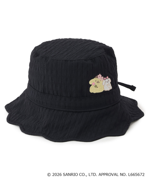 お花見を楽しむハローキティとポムポムプリンを刺しゅうしたハットです。 スカラップのツバでシルエットに個性をプラス。 後ろにリボンがついており、お好みでサイズ感を調節できます。 どんな装いにも馴染みやすいカラーリングで、日常使いにぴったりです。
