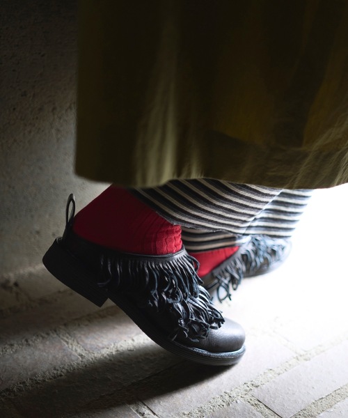 JUCO. NEW COLLECTION 期間限定にて予約受付いたします。 申込締切 3月29日 PM12:00まで くせっ毛のような質感を演出した、 JUCO.のアイコニックなくせっ毛スリッポン。 どんなスタイルにも合わせやすいブラックに、かかとのループには質感のあるレザーでアクセントを添えました。靴本体の革を裁断した際に出る革端からフリンジ部分を切り出し、手洗いしてぎゅっと絞って乾燥させることで、パーマをかけたようなくるくるとした質感を生み出しています。フリンジは2種類の革をミックスし、立体感のある表情に仕上げました。 ソールは軽さとほどよいボリュームを出すため、EVAスポンジで厚みを持たせた合成クレープソールを使用。履き込むほどに、くせっ毛部分の革ならではの経年変化もお楽しみいただける一足です。 【LADIES】 22.5、23、23.5、24、24.5、25 【MENS】 25.5、26.5 JUCO. NEW COLLECTION 落ち着いたブラウンやブラックをベースに、ビビットなカラーや異素材の組み合わせをアクセントに。 静かな佇まいの中に、JUCO.らしい遊び心を感じられるコレクションに仕上がりました。 これまで出会ってきた “あなた” と、これから出会う “あなた” へ。 感謝の気持ちを込めて届ける、JUCO.の20周年コレクションです。 ANLIO OFFICIAL、ZOZOTOWN ANLIO、2ショップにて予約発売 ANLIO OFFICIAL→会員10%割引、ZOZOTOWN ANLIO→paypayポイント、ZOZOポイント 各ショップによりサービス内容が異なります ▼ブランドのお気に入り登録 新商品や再入荷など、いち早くブランドのお得な情報を受け取ることができます。 ※ご注文いただいた予約商品のお届け時期の確認は、注文履歴ページより行えます。