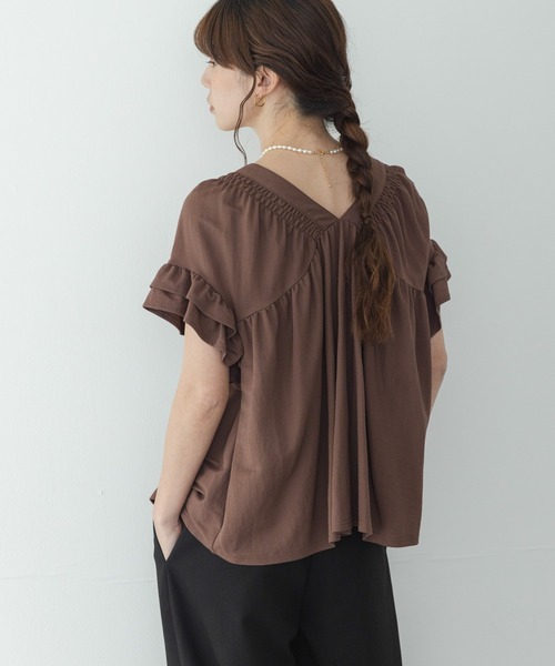柔らかな表情と機能性を兼ね備えたこれからの季節にピッタリなデザインカットソー ゆとりのあるシルエットで、体のラインを拾わずリラックスした着心地の一着。 フロントにシャーリングを施し、ふんわりとした立体感と程よいボリュームをプラスしました。 袖口にはフリルをあしらい気になる二の腕をさりげなくカバー、首元はデコルテを美しく見せてくれるVネックデザインで、顔周りをすっきりとした印象に。 デイリー使いに嬉しい機能素材で、暑い季節でも快適に着用していただけます。 POINT ・嬉しい機能素材 ・一枚で着映えるデザイン ・マシンウォッシャブルでご自宅でお洗濯可能 COORDINATE ボリュームのあるシルエットなのでパンツと合わせたカジュアルスタイリングや、タイトスカート合わせがおすすめ。 【2026 Spring/Summer】【26SS】 ※商品画像は、光の当たり具合やパソコンなどの閲覧環境により、実際の色味と異なって見える場合がございます。予めご了承ください。 ※商品の色味の目安は、商品単体の画像をご参照ください。 ▼お気に入り登録のおすすめ▼ お気に入り登録された商品は、マイページにて現在の価格情報や在庫状況の確認が可能です。 お買い物リストの管理にぜひご利用ください。