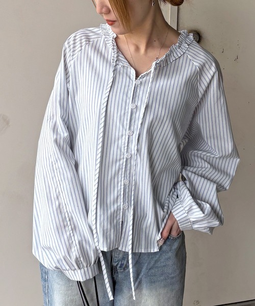 ●design襟元に控えめなフリルがあしらわれた長袖シャツ。 さわやかで知的なストライプ柄が甘いフリルを程よく引き締め、甘辛MIXな大人スタイルに。 春先から秋口まで、季節を問わず大活躍するアイテムです。 ●fabricややハリのあるコットン素材。 さらりとした肌触りで、ロングシーズン着用出来ます。 ●style デニムやチノパンツなどシンプルなボトムと合わせるのがおすすめ。 ショートパンツと合わせるとヘルシーなスタイリングに仕上がります。 ●color ホワイト、ブルー ・・・・・・・・・・・・ 厚み:普通 伸縮性:なし 肌触り:普通 裏地:なし 透け感:ホワイトに若干 ・・・・・・・・・・・・ ●ISOOK / アイスー 人気インフルエンサーの個性が詰まったセレクトアイテムや ブランドセレクトのトレンドライクなカジュアルアイテムを発信。 シンプルな日常のスタイリングに溶け込む、様々な個性あふれるブランドです。 ▼▼お気に入りの登録でお得な情報をゲット!▼▼ 商品のお気に入り登録で、再入荷の通知や、ラスト1点、セールのお得な通知を受け取ることができます。 ブランドのお気に入り登録で、新商品や再入荷など、ISOOKのお得な通知を受け取ることができます。 【ATTENTION】 ※アイロンの際はあて布の使用をおすすめいたします。 ※商品画像につきましては、なるべく実物に近づけて撮影いたしておりますが、 閲覧頂いておりますモニターによって、画像と実際の商品のお色に多少の差異が生じる場合が御座います。予めご了承下さい。 ※サイズにつきましては、すべて平台に平置きにし測定しております。 商品によっては実際の製品上がりサイズと1~12㎝程、多少誤差が生じる場合がございます。 予めご了承ください。