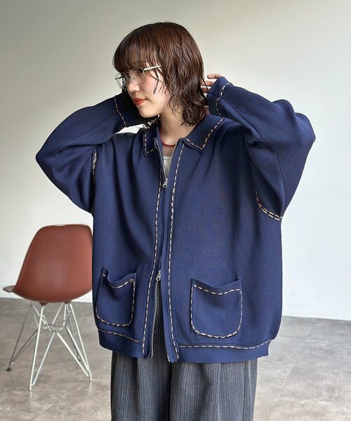 羽織るだけでコーデが決まる、主役級ステッチニット! ハンドクラフト感のある配色ステッチが、シンプルなデザインに映える一枚! 身幅や袖にゆとりを持たせたリラックス感のあるシルエットで、さっと羽織りやすいのが魅力です◎ ジェンダーレスで楽しめるデザインなので、パートナーとのシェアやリンクコーデにもおすすめです。 【POINT】 ・目を惹く配色ステッチがコーディネートのアクセントに ・着こなしのアレンジが楽しめるダブルジップ仕様 ・トレンド感のあるオーバーサイズシルエットで、インナーを選ばず着回せる 【STYLING】 ・インナーにシンプルなTシャツを合わせ、ワイドなデニムやカーゴパンツと合わせたストリート感のある着こなし ・キャミワンピースやロングスカートにさらりと羽織って、カジュアルダウンさせたミックススタイルもおすすめ 【KEYWORD】 春服 ※生産の都合上、お届け時期が前後する場合がございます。ご注文いただいた予約商品のお届け時期の確認は、注文履歴ページより行えます。 ※個体差があるため、サイズが1~2㎝程異なる可能性がございます。 ※お色物は色移りする可能性がございます。着用、お取り扱いは商品についておりますアテンションタグを必ずご確認ください。 ※商品画像はサンプル品を使用しているため、実際の商品と仕様、加工、サイズが若干異なる場合がございます。また、可能な限り実物に近いカラーにて掲載していますが、使用しているパソコンのモニター設定や、 携帯電話のメーカー・機種により実際のカラーと異なって見える場合がございます。予めご了承ください。 *********************** 商品の特徴 透け感:なし 裏地:なし 伸縮性:あり 光沢感:なし 生地の厚さ:普通 洗濯・取り扱い 洗濯:液温は40 ℃を限度とし、手洗いができる クリーニング:弱い操作によるウエットクリーニングができる タンブル乾燥:タンブル乾燥禁止 アイロン:底面温度120 ℃を限度としてアイロン仕上げができる ***********************