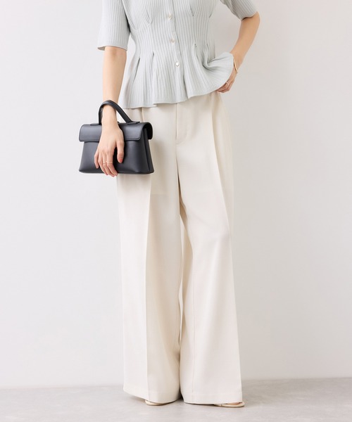 【2026 Spring/Summer】【26SS】 <POINT> ・サラッとした肌触りの爽やかなパンツ ・程よいゆとりとスッキリ見える拘りならシルエット ・嬉しい機能が沢山ついた素材 【デザイン・シルエット】 前はタック仕様。3タックでゆとりはありますが、上部分を中縫いしているのでスッキリとしたシルエットが叶います。ベルト後ろはサイドにゴムを入れた仕様にしてます。着用時楽で着心地も良いです。 【素材】 日差しが強い季節に嬉しいUVケア、接触冷感、吸水速乾など機能性付き素材。 サラッとした触り心地で、軽さも魅力です。洗濯機洗い可能。 【カラー】 ベーシックで取り入れやすいブラック、キナリ、カーキ系(ややブラウンより)の3色展開です。 【おすすめのスタイリング】 オフィスカジュアルではとセットアップでお作りしているジャケット合わせがおすすめです。セットでの着用ですとインナーをカジュアルなものに落とし込んでも決まりやすいです。また、素材感がカジュアル合わせにも取り入れやすい素材感です。 【同シリーズアイテム】 Airyシングルドルマンジャケット(品番BVV36200) ----------------------------- 裏地:なし 光沢感:なし 透け感:ややあり 伸縮性:なし ウエスト:後ろ一部ゴム ファスナー:あり ポケット:あり ボタン:なし 生地の厚さ:やや薄手 季節:春、夏、秋 ----------------------------- 【モデル着用サイズ】 身長:160cm 着用サイズ:M ※画像の商品はサンプルです。実際の商品と仕様、加工、サイズが若干異なる場合がございます。 ※画像によっては実際の色味と異なる場合があります。正しい色味は生地アップ画像をご確認ください。