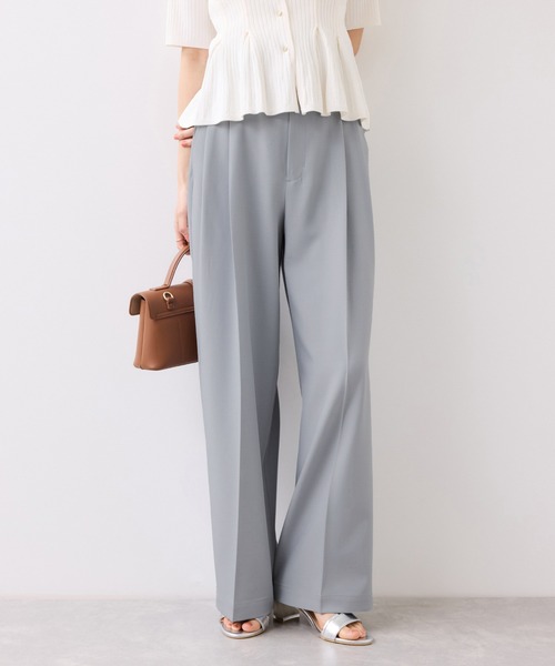 【2026 Spring/Summer】【26SS】 <POINT> ・ウエストはきちんとデザインのベルト付きシルエット ・2タックでゆとりを持たせて肌離れ ・程よいハイウエストですっきり足長 ・夏に嬉しい接触冷感機能付き ・シワになりにくい素材のためお手入れも簡単 【デザイン・シルエット】 マルチシーンで活躍できるさっと素材を使用しややハイウエストに作っています。 トップスをウエストインした時も決まりやすく、ジャケットシーンのあわせとしても大活躍。裾はそこまで広くないワイドシルエットなので、着用シーンも幅広いです。共地のベルト付きできちんと感もあり、ウエスト部分は後ろのサイドにゴムが入りスッキリ感と着心地を両立。 【素材】 シワになりにくく、さらっとした素材。接触冷感機能付き。 ツイル目できちんとの中にカジュアル感を兼ね備えた見た目です。 【カラー】 チャコール、旬の赤みブラウン、サックスの合わせやすい3色。 【おすすめのスタイリング】 トップスの裾インスタイルが脚長効果がありおすすめです。インスタイルだとジャケットなどの羽織も合わせやすいです。Tシャツだとカジュアルな雰囲気になり、オフスタイルにもおすすめ。 ----------------------------- 裏地:なし 光沢感:ややあり 透け感:サックス(48)のみややあり 伸縮性:ややあり ウエスト:後ろ一部ゴム ファスナー:あり ポケット:あり ボタン:なし 生地の厚さ:やや薄手 その他仕様:ベルト付き 季節:春、夏、秋 ----------------------------- 【モデル着用サイズ】 モデル身長:160cm 着用サイズ:M ※画像の商品はサンプルです。 実際の商品と仕様、加工、サイズが若干異なる場合がございます。 ※画像によっては実際の色味と異なる場合があります。正しい色味は生地アップ画像をご確認ください。