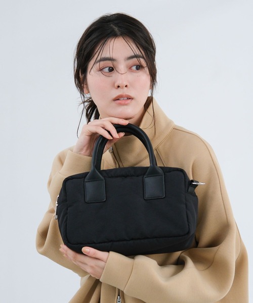横長シルエットのボストンバッグ。 取り外し可能なショルダー紐付きで、ハンドバッグとの2WAY仕様です。 ボディは軽い素材を使用し、フェイクレザーの持ち手が高見えするデザイン。 マチや内ポケットがあるので、収納力も◎ きれいめにはもちろん、カジュアルにも合わせやすいアイテムです。
