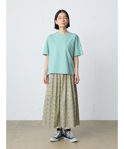 絹のつやと手触りを木綿で再現するためにつくられたタナローン。ファーマーズスカートから着想を得たリバティプリントファーマーズスカートです。やわらかな肌触りと、軽さ、豊かなドレーブ性が特徴。1920年代、当初はスーダンの綿が使われたことから、近くのタナ湖にちなんでタナローンと名づけられたと言われます。共布のウエストコードで絞って穿くタイプのスカートでボタンはナットボタンを使用。リボン位置は横でも後ろでも前でもOK。タックが入っていることで軽くふんわりとしたシルエットを表現しました。女性らしく清楚な雰囲気を演出。イエローとブルーの明るい色合いが魅力です。同シリーズ1-730163/リバティプリントシャツとセットアップも素敵です。 【Demeter(ディミィータ)】 『A LIBERTY ODYSSEY』シリーズから。古代の神話や伝説など、古典的な物語からインスパイアされた旅へと誘います。1920年代のリバティの試刷り紙をもとに、オリジナルの独特の質感と線描画を残しスタジオで丁寧に描きなおしました。ポピー、デイジー、コーンフラワー、ミニチュアのつぼみが、シェブロンの小枝で縁取られ、ギリシャ神話の収穫の女神にちなんで、トウモロコシの穂を思わせる幾何学的なフォルムに仕上げました。 Point シルエット:スタンダード デザイン:その他 ウエスト:ゴムなし Detail 裏地:なし 透け感:なし 伸縮性:なし 光沢感:なし ポケット:なし ※商品画像は、光の当たり具合やパソコンなどの閲覧環境により、実際の色味と異なって見える場合がございます。予めご了承ください。 ※商品の色味の目安は、商品単体の画像をご参照ください。