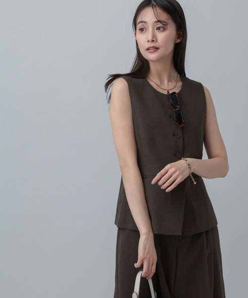 MATINEE LINE ・素材/機能 イージーケア ストレッチ UVケア マシンウォッシャブル 表面に凹凸のある縮れが特徴のクレープ生地を使用。 リネン混の清涼感がありながら、ポリエステルを混合することで、シワになりにくくお手入れが簡単な素材に仕上げました。 ・デザイン すっきりと着こなせる、コンパクトなシルエットのジレ。 共地のくるみボタンがさりげないアクセントになり、上品で優しい印象をプラスしています。 長すぎない絶妙な着丈に設定しているため、ボリュームのあるボトムスともバランスよく着用可能。 さらっと羽織るだけで、いつものコーディネートを今っぽくアップデートしてくれます。 ・おすすめスタイリング 同素材のMATINEE LINE/リネンライクワイドパンツ/646633 や>MATINEE LINE/リネンライクショートパンツ/646634と合わせていただくのがおススメ。 ----------------------------- 透け感:やや透ける 伸縮性:あり 生地感・厚さ:普通 裏地:なし ----------------------------- ・ブラウン系その他で計測しています。 (こちらは参考情報となります。カラーにより多少の誤差がございます。) ・こちらの商品はGLOBAL WORK独自の採寸方法となっています。本サイトのサイズガイドと採寸方法が異なる場合がありますのでご了承ください。 ・お買い物が便利になる機能がたくさん ・商品のお気に入り登録 完売アイテムの再入荷通知、ラスト1点、またクーポンやお値下げ通知をお知らせします。 ・ブランドのお気に入り登録 新商品や再入荷のお知らせ等、いち早くブランドのお得な情報を受け取ることができます。 ぜひご登録ください。