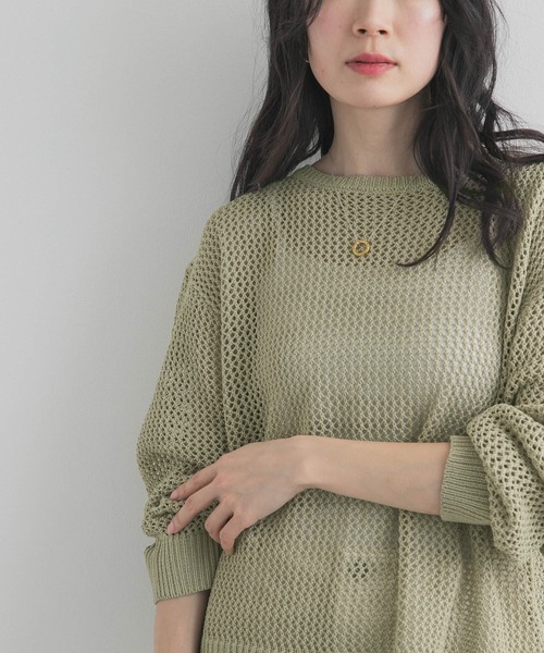 ヘルシーな透け感のルーズメッシュニット レイヤードを楽しめるメッシュニットプルオーバーが登場。 ざっくりとした編地が立体感を生み、コーディネートに表情を添える一枚。 肩からのなだらかな落ち感と身幅をとったルーズなシルエットが、こなれたリラクシングな雰囲気を演出します。 リネンライクなドライな質感の素材を使用し、見た目にも涼しげな印象に。 見た目以上に肌当たりが良いため、素肌にも嬉しい着用感です。 カラーは肌馴染みの良いナチュラルと、春らしいライトカーキの2色を採用。 インナーとのレイヤード次第でさまざまなスタイリングが楽しめるのも魅力です。 大人っぽいヘルシーな透け感が、シンプルな着こなしに抜け感をプラスするアイテムです。 【2026 Spring/Summer】【26SS】 ※この商品は、素材の特性上引っ掛かりやすいのでご注意ください。 ※この商品(GREGE)は、長時間強い日光や照明を受けますと、変色するおそれがあります。ご着用や保管の際は、充分にご注意ください。 ※その他お取り扱いに関しましては、商品に付属のアテンションタグをご覧ください。 総重量 : 約350g ※商品画像は、光の当たり具合やパソコンなどの閲覧環境により、実際の色味と異なって見える場合がございます。予めご了承ください。 ※商品の色味の目安は、商品単体の画像をご参照ください。 ▼お気に入り登録のおすすめ▼ お気に入り登録された商品は、マイページにて現在の価格情報や在庫状況の確認が可能です。 お買い物リストの管理にぜひご利用ください。 素材感 透け感 : あり 伸縮性 : あり 裏地 : なし 光沢 : なし ポケット : なし
