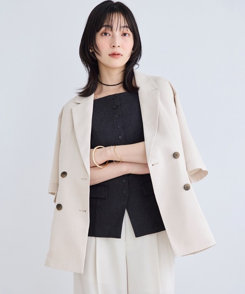 【2026 Spring/Summer】【26SS】 <美easy> ・自宅でのお洗濯が可能!イージーケアが叶う ・ソフトタッチの風合いで着心地の良い合繊素材を使用 ・美シルエット&セットアップ対応可能で、簡単にキレイにコーデが決まる ・地球環境に優しいエコ素材を使用 <POINT> ・デスクワークや長距離移動など長旅の持ち運びにも最適。 ・暑い時期に嬉しい肌に触るとひんやりする接触冷感機能付き ・マシンウォッシャブル可能 ・同素材のセットアップ対応アイテムを複数展開 ・コーディネートを悩まずにおしゃれに時短が可能! 【デザイン・シルエット】 毎シーズンVISで人気の美easyリネンライクハーフスリーブジャケット! 今シーズンでは、フロントの打ち合わせをW仕立てにして、よりジャケット感を出しました! 軽やかな着心地が魅力のサマージャケットは、オフィスにも休日にもマルチに活躍する1着です。 【素材】 地球環境に優しい再生ポリエステルを使用しています。 シーズン長くお召しいただける素材感。(サラリとした風合いの合繊素材)ご自宅でのお洗濯も可能でお手入れしやすく、デイリーユースにぴったりの一着。 【カラー】 着易いベーシックなブラック、生成り、大人シックなマニッシュグレーの3色展開です。 【おすすめのスタイリング】 同素材のセットアップトップスとのスタイリングもおすすめ! ワイドボトムやIラインスカート合わせで通勤スタイルはもちろんカジュアルな着こなしとして、Tシャツ&デニムでカチッとしすぎず、きちんと見えも叶えてくれるコーデが完成します。 ■セットアップ対応 美easyリネンライクワイドパンツ(BVS36100) 美easyリネンライクベルテッドストレートパンツ(BVS86100) 美easyリネンライクマーメイドスカート(BVC36100) 美easyリネンライクリボンビスチェドッキングトップス(BVM36100) 美easyリネンライクビスチェドッキングブラウス(BVH36100) ----------------------------- 裏地:なし 光沢感:なし 透け感:ややあり(キナリ系) 伸縮性:なし ポケット:あり ボタン:あり(開閉可) 生地の厚さ:やや薄手 季節:春、夏、秋 ----------------------------- 【モデル着用サイズ】 身長:161cm 着用サイズ:M ※画像の商品はサンプルです。 実際の商品と仕様、加工、サイズが若干異なる場合がございます。 ※画像によっては実際の色味と異なる場合があります。正しい色味は生地アップ画像をご確認ください。