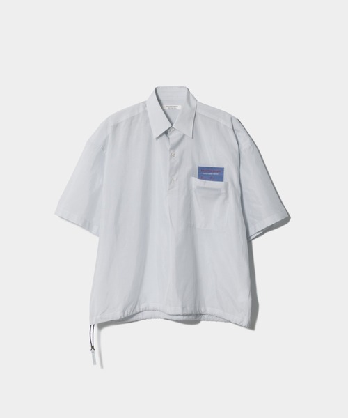 【デザインの特徴】 ・翼の様なワイドスリーブが特徴的な半袖シャツ ・ボリュームフィット ・左胸ポケット裏にBIGジャガード品質ネーム ・裾のドロストを絞ることでシルエットが変化 ・ボリュームフィット ・腰下丈 【素材のこだわり】 ・140/2の細番手の超長綿とシルクを交互に配置した超軽量シャツ素材 ・無地のような細かい刷毛目3色使いの奥行きのあるシャンブレー組織 ・糸の番手差により生じる表面の繊細な凹凸が肌触りの良い清涼感のある素材 ・軽さとシルクの滑らかさが特徴