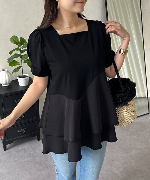 一枚で着映える、大人のための異素材ドッキングティアードTシャツ ●カットソー素材の快適さと、ティアードデザインがドッキングした一枚で着映えるトップス ●胸下のウェーブ切替から広がる2段のティアードが、気になる腰回りやお腹周りをふんわりカバーします ●ほんのりボリュームのある袖が、気になる二の腕をカバーしつつフェミニンな印象をプラス ●デニムでカジュアルにも、きれいめパンツやスカートでオフィススタイルにも着回せる万能さが魅力♩ -------------------------------------------------------------- 生地の厚さ:普通 伸縮性:なし 透け感:オフホワイトのみややあり 裏地:なし ポケット:なし 洗濯方法:ご自宅で手洗い可 -------------------------------------------------------------- ※商品画像はサンプルにて撮影をしておりますので、 実際の商品とは色味や仕様・サイズ等が異なる場合がございますので あらかじめご了承ください。 ※商品のお取り扱いに関しましては、商品に付属の アテンションカード、洗濯ネームをご覧ください。 ※撮影場所やお使いのモニター環境により若干お色味が 異なる場合がございます。 特にロケの撮影では明るく見える傾向にございます。 ※サイト上ではフリーサイズの表記ですが、商品タグには Mサイズと表記されている場合がございます。 その場合、ワンサイズでのご用意となりますのでサイズミス などではございません。詳しいサイズはサイズスペックを ご確認いただきますようお願い致します。 ※サイト上でのカラー名とお届けした商品に記載されている カラー名が異なる場合がございますので予めご了承ください。 <返品・キャンセルについて> ・着用・洗濯後の返品は致しかねます。 ・商品到着後、着用前に商品を確認して頂きますようお願い致します
