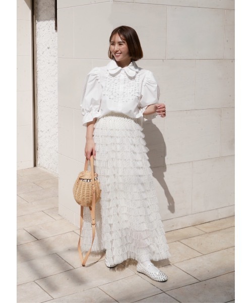繊細なチュールを幾重にも重ねた、存在感抜群のティアードロングスカート。ブラックカラーで甘さを程よく抑え、フェミニンながらも大人っぽく着られる一枚。 ウエストはゴム仕様で履き心地も楽ちん。 動くたびに揺れるフリルが、シンプルなトップス合わせでも華やかさを演出してくれます。 【素材】 表地:ポリエステル100% 【コーディネート】 ・コンパクトなニットやリブトップスを合わせて王道大人可愛いコーデ ・ロゴTやスウェットと合わせて甘辛ミックスに ・デニムジャケットやショートブルゾンを羽織ってバランスよく ・足元はブーツで引き締めても、フラットシューズで抜け感を出しても◎ 【生地・素材感】 厚み:ややあり 透け感:なし 伸縮性:あり 光沢感:ややあり ポケット:なし 裏地:あり ウエストゴム:あり 洗濯方法:洗濯機可(ネット使用) ※詳しいお手入れ方法は商品タグをご参照ください。 ◯ SNS新着アイテムやお得なセール情報を配信中♪コーデのご参考にも...♡ 【公式 Instagram】@bebeod_official【公式 TikTok】@bebeod_official 【お買い物をより楽しんで頂くために🌿】 ◯ブランドのお気に入り登録♡ 新商品や再入荷など、いち早くブランドのお得な情報を受け取ることができます。 ◯ 商品のお気に入り登録♡ 完売カラーの再入荷通知や、完売間近の通知、セールの通知を受けることができます。 ※注意※ ◯商品画像は、撮影時の光や角度により、実物の色味と異なって見える場合がございます。 また、表示のサイズ感と実物は若干異なる場合もございますので、予めご了承ください。 ◯着用、お取り扱いの際は商品についておりますアテンションタグ、洗濯ネームを必ずご確認ください。 ◯商品によっては、繊維や染料のにおいが感じられる場合がございます。 <返品・キャンセルについて> ・着用・洗濯後の返品は致しかねます。 ・商品到着後、着用前に商品を確認して頂きますようお願い致します。 ※ご注文いただいた予約商品のお届け時期の確認は、注文履歴ページより行えます。 ※他のキャンペーンにより、期間中に価格が変動する場合があります。 ※セールは予告なく終了させていただく場合もあります。
