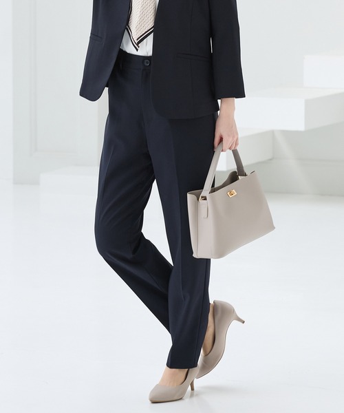 快適素材の涼しげパンツ 【デザイン】 きちんと感のあるセンタープレスと、腰回りのラインにこだわった、裾に向かって細くなる美しいシルエットで美脚効果も抜群なテーパードデザイン、股下63cmタイプ。 自分にぴったりが見つかる、S~3Lまで揃った豊富なサイズ展開。 【素材・機能】 『ストレッチ』の利いた、さらっと涼しげな麻調素材。 洗濯機で洗える『ウォッシャブル』と、シワになりにくい『イージーケア』、ひんやり快適な『接触冷感』の機能付き。 後ろウエストゴムでストレスフリーなはき心地。 透けが気にならない裏地と、便利な両サイドポケット付き。 【スタイル】 ブラウスやコンパクトトップスと合わせたきれいめ通勤スタイルに大活躍。 同素材の商品もバリエーション豊富にご用意しています。 よりスタイリッシュに決まるセットアップでの着用もおすすめです。 ●セットアップ商品 ・8分袖1つ釦テーラードジャケット(品番:773-41-8523) ・8分袖2つ釦テーラードジャケット(品番:773-41-8524) ・8分袖カラーレスジャケット(品番:673-41-8525) ・8分袖ノーカラージャケット(品番:773-41-8526) ・テーラードジレ(品番:773-45-8531) ・ベルト付フレアスカート(品番:573-23-8996) ・ベルト付タイトスカート(品番:573-23-8997) ・センタープレスパンツ(股下60cm)(品番:573-73-1106) ・センタープレスパンツ(股下63cm)(品番:573-73-1107) ・センタープレスパンツ(股下66cm)(品番:573-73-1108) ※時期により未販売の場合がございます。 ※一部商品はカラー展開が異なります。 ※後ウエスト部分ゴム ●裏地/あり ※前中心ファスナー開き ※後ポケットみせかけ 品番:573-73-1107