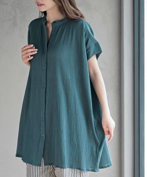 ☆2026/SS NEW☆ さらりと着られる楊柳ブラウス 表面感のある楊柳生地が肌離れもよく爽やかに着られるブラウス。 柔らかなコットン素材で吸水性も良くさらりとした肌触りで暑い日も快適にご利用いただけます。 顔周りを上品に見せてくれるバンドカラー。 ドロップショルダーと袖口の切り替えが肩と腕の華奢見えを叶えてくれます。 ウエスト周りやヒップラインを拾わない安心のチュニック丈。 ボタンを外せばレイヤードも楽しめるのでコーデの幅も広がる1枚です。 裏地なし 伸縮性なし 薄手 前開きボタン留め ポケットなし インド生産 (インド製品特有の色柄、風合いのため多少の色むら、織りキズ、別糸混入等は商品の特徴の一つですので、予めご了承ください) 洗濯:洗濯機使用可(ネット使用) ▼お気に入り登録でお得がいっぱい▼ ~商品をお気に入り登録~ 再入荷・ラスト1点などの通知を受け取ることができます! ~ブランドをお気に入り登録~ 《rps》の新商品・再入荷情報をいち早くお届け!