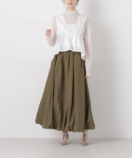 【2026 SS】 NANO universe(ナノ・ユニバース) 『揺れるたびにときめく、軽やかバルーンスカート』 立体感のあるシルエットと表面感のある素材が、軽やかでカジュアルな印象のバルーンスカート。ふんわりしたシルエットが可愛らしさもあり、女性らしさを演出してくれるのも魅力です。 ■デザイン ・今年らしい着こなしを楽しめるバルーンスカート ・動く度に、揺れる裾が軽やかさをプラス ・着心地がラクな後ろウエストゴム仕様 ・サイドポケット付きで実用性も◎ ■素材 ・表面に凹凸感のあるナイロン素材を使用 ・程よいハリもあり、シーズンレスで着用可能 ・軽量でシワになりにくく、お手入れしやすい素材感 ・洗濯機使用可 ■カラー展開 ・ベーシックで着回しやすいブラック、アイボリー、カーキ ■コーディネート ・小さ目のサイズ感のトップスと合わせて、メリハリあるスタイリングが今年らしくてオススメ ・シンプルなTシャツにサンダルを合わせるコーディネートも素敵 ■取扱方法 ネットを使用してください。色物(特に濃色)と白物・淡色物は分けて洗ってください。蛍光増白剤が入っていない洗剤を使用して下さい。あて布を使用してください。ゴム部分には、アイロンを当てないで下さい。素材の特徴上、直射日光や蛍光灯の長時間の照射により、色あせすることがあります。濃色品が着用中の摩擦や雨・汗等で他のものに色移りすることがあります。また、強くこすられたり、濡れた状態でこすられると、白っぽくなることがあります。極度な力が加わると縫い目が開いたり、目寄れ(糸がずれて生地の目が開く)する性質を持っています。雨や汗など水に濡れることにより、光沢がなくなったり、シミになることがあります。ご着用の際は、摩擦や引っかけにご注意ください。繰り返しの摩擦作用により、毛羽立ちや、毛玉が発生することがあります。 ※サンプルにて撮影、採寸を行う為、実際にお届けする商品と仕様やサイズが異なる場合がございます。予約時は生産の都合上、お届け予定時期が前後する場合もございますので、予めご了承下さい。 ※光の当たり具合や撮影環境により色味が異なる場合がございます。正しい色味はスタジオ画像の色味をご参照ください。 ※こちらの商品は、アウトレット店舗での取り扱いになります。直接店舗へお問い合わせの際はアウトレット店舗へお願い致します。プロパー店舗での取り扱いはございませんので、ご了承ください。 ※サイズスペックは、ブランドの採寸方法で表記している場合がございます。予めご了承ください。 ▼商品のお気に入り登録 お気に入りアイテムの再入荷や残り1点の通知を受け取ることができます。 ▼ブランドのお気に入り登録 新作アイテムの入荷や人気アイテムの再入荷、タイムセールやクーポンなど、 いち早くブランドのお得な情報を受け取ることができます。