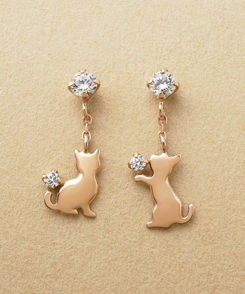 おやつをおねだりしているネコのスイングピアスです。 少し首を傾げたり前足で催促する愛らしい姿が魅力的。 ピンクゴールドで優しい雰囲気の仕上がりです。 *テイクアップの商品は、日本の職人の手仕事により作られた Made in Japan です。 ◆付属品◆ ボックス /ショッパー /サーティフィケートカード(品質証明書) お品物はジュエリーボックスに入れてお届けいたします。ブランドショッパーも一緒にお付けしておりますので、贈り物にもおすすめです。付属品は画像のものと異なる場合がございますので、予めご了承くださいませ。 また、お修理の際に必要となりますのでサーティフィケートカードは大切に保管して頂きますようお願い致します。 ▼商品のお気に入り登録 お気に入りアイテムの値下げ・再入荷・在庫1点などの通知を受け取ることができます。 ▼ブランドのお気に入り登録 新作アイテムの入荷や人気アイテムの再入荷、タイムセールやクーポンなど、いち早くブランドのお得な情報を受け取ることができます。 【TAKE-UP】 1979年よりファッショントレンドを取り入れた豊富なカラーストーンジュエリーをご提案。長く楽しんでいただきたいジュエリーだからこそ、身に着ける方を想い、Made in Japanにこだわったオリジナルジュエリーを手がけています。
