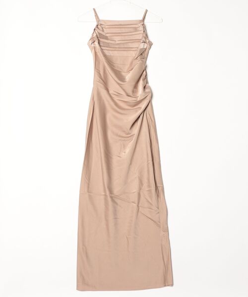 華奢なストラップとすっきりとした縦ラインが印象的なロングドレス。ボディに寄り添うシルエットが女性らしさを引き立て、シンプルながら存在感を放ちます。一枚でさらりと着こなすだけで、凛とした雰囲気をまとえるアイテムです。アクセサリー次第で表情の変化も楽しめます。