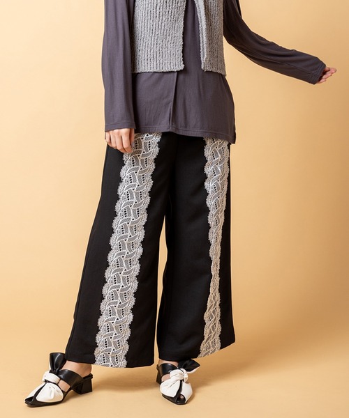 Spring Summer collection クラシカルなレースラインが、シンプルなパンツをエレガントに格上げ。 甘さを削ぎ落としたハンサムなムードが魅力。 =========================== 透け感: なし 伸縮性: なし 光沢感: なし 裏地: なし 素材について: 裏がなくとも響きにくい厚み、織のある風合い =========================== 【素材】 ポリエステル98%,ポリウレタン2%, レース/ポリエステル100% 【仕様】 ウエストゴム サイドポケット2つ 【洗濯表示】 洗濯機可 ■商品のお気に入り登録 クーポンやタイムセール、再入荷通知やラスト1点など お得な情報を受け取ることができます ご登録をお忘れなく◎