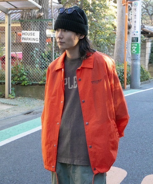 軽やかで急な天候の変化にも対応する、薄手ナイロン素材のコーチジャケット。 一般的なコーチジャケットよりもさらにライトな素材を採用し、着た瞬間にわかる“軽快さ”が魅力です。 撥水性を備えたエコナイロンが、小雨程度ならしっかりカバー。 ミニマルなルックスは、色のニュアンスと素材感を引き立てながら、どんなスタイルにも自然に馴染みます。 ●ブランドのお気に入り登録 完売カラーの再入荷時やラスト1点の通知を致します。 ●商品のお気に入り登録 新商品や再入荷等、いち早くブランドの情報を受け取ることができます。ぜひご活用下さい。 ========================== 2005年に東京でブランドをスタートし、日本のみならず世界中で高い評価を受ける〈APPLEBUM〉。 A Tribe Called Questの名曲『Bonita Applebum』をブランド名の由来とし、ヒップホップの黄金期とされる80~90年代を生で体感してきた感覚をウエアに落とし込んでいる。 これまでに〈STÜSSY〉や〈UNDEFEATED〉などのブランドや、アーティスト・映画といった様々なコラボレーションを実現。 中でも伝説のヒップホップグループ「Wu-Tang Clan」とのコラボレーションは、彼らが影響されたカンフー映画のモチーフを日本の名産品であるスカジャンに落とし込み、90’sヒップホップを東京的解釈で発信したAPPLEBUMならではのコレクションとなった。 「反骨と革新とユーモア」を哲学として掲げ、アメリカやヨーロッパのストリートと肩を並べられる、日本や東京ならではの価値観や表現を誇りに常に進化し続けているブランドである。 ==========================